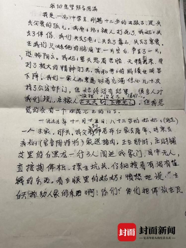 2001年,在案发近两年后,齐乌日那根据家人回忆的细节,手写了一封自述信,详细地记录了“金佛像”被盗、父亲遇害的细节,她希望能有机会交给有关部门,为侦破案件提供线索。