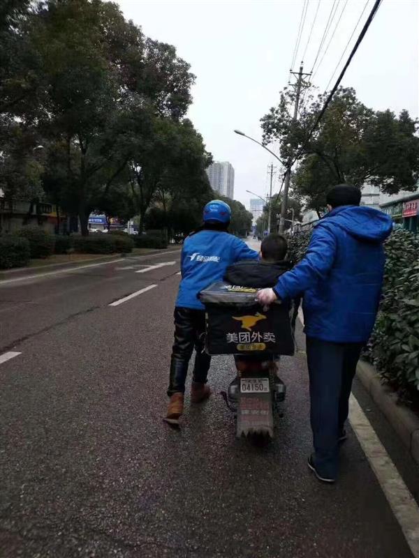 因为走到社区医院还有些距离,她和儿子有些吃力,此时正好碰到了外卖小哥。