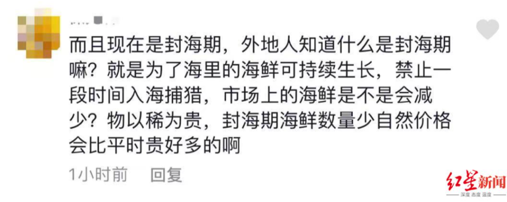 “时令海鲜的价格是随行就市的,特别是休渔期,海鲜的价格必然会比平时贵很多。”网友“桀先生”说,今年北海的休渔期是从5月1日开始,将持续到8月中旬,在这3个多月里,海鲜市场的价格普遍都在上涨,“更不要说沙虫、油螺本身的价格就不低。”