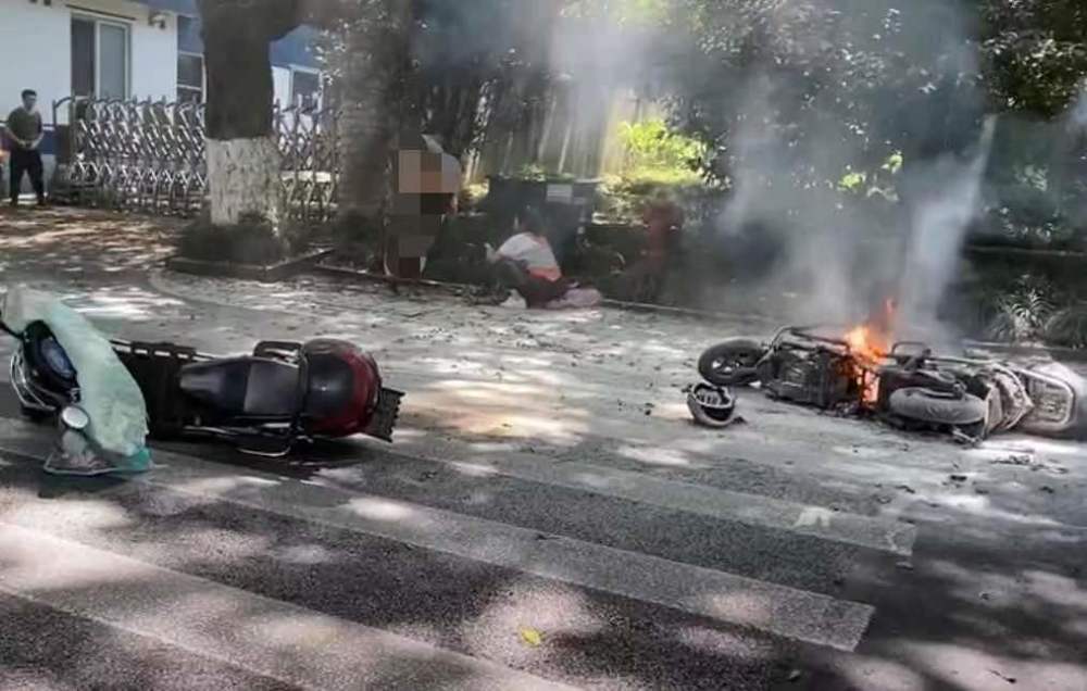 7月18日,杭州玉皇山路上发生一起电动车火灾,从现场视频可以看到,路上两辆电动车倒在地上,其中一辆车被大火烧的只剩下黑色框架。事故中爆炸电动车上的一对父女受伤严重,被送往浙江大学医学院附属第二医院进行治疗。