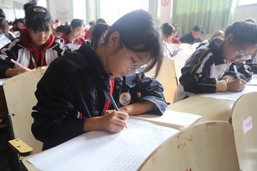 经过初赛选拔,200余名学生代表参加了此次比赛。比赛现场,参赛学子们肩平纸正,精神饱满,心会神凝;书写皆如流水行云,横竖撇捺,布局合理。他们笔酣墨饱,一笔而下,观之若脱缰野马,腾空而来绝尘而去;又如蛟龙飞天,流转腾挪,来自空无归于虚旷。在流动的笔尖下,每一个汉字越发灵动,宛如一个个小精灵,时停时舞,精彩绝伦!