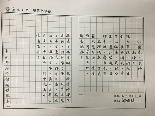 为弘扬中华传统文化,继承和发扬汉字文化知识,深入学习贯彻习近平关于教育工作的重要讲话精神,激发学生对祖国灿烂传统文化的热爱,提振文化自信,10月29日,广信二中举行读书系列活动之硬笔书法大赛。