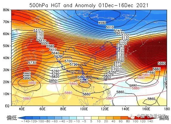 12月上半段亚洲500百帕平均位势高度距平,来自NCC