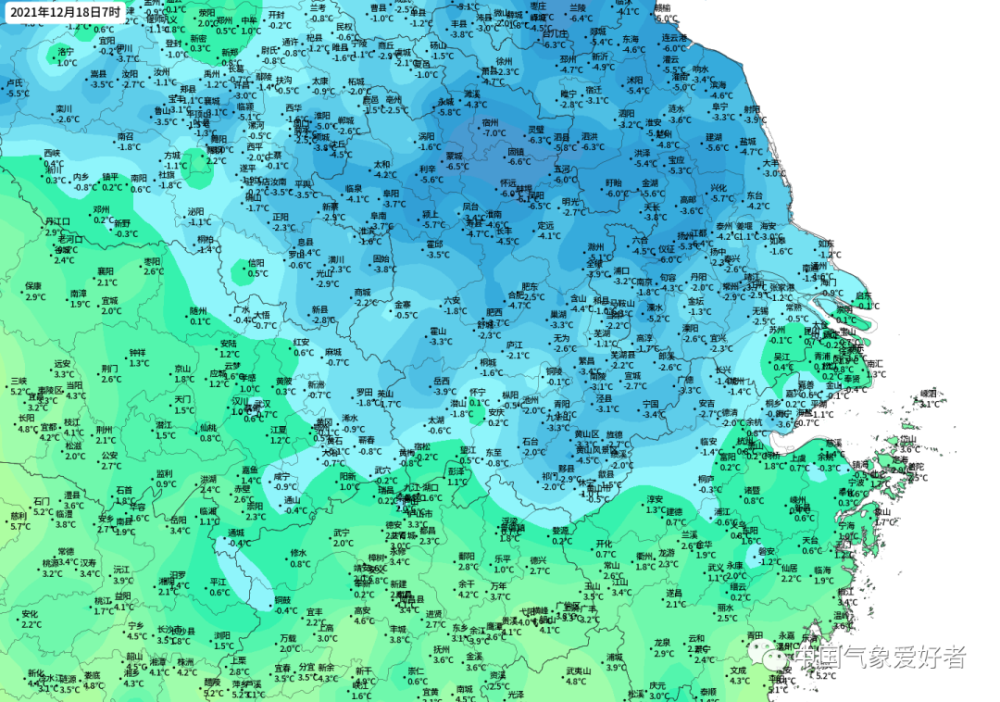 12月18日早晨7点江浙沪等省气温,中气爱制作
