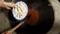勾芡,豆腐表皮弹滑,不易上色,川菜厨师在传承中汲取养料,极富创意地用三层芡汁充当媒介。第一芡,整体覆盖;第二芡,少量增补;第三芡,定形固色。待到芡汁收毕,麻婆豆腐的精巧姿态,逐渐成形,再送上一捻花椒粉,让菜肴中最鲜明的一道滋味落定。