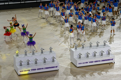 7月28日晚,2020—2021学年“少年硅谷——全国青少年人工智能教育成果展示大赛”在江西婺源体育中心拉开帷幕。来自全国各地的参赛选手代表,领队、教练员和裁判员代表等1600余人参加开幕式。