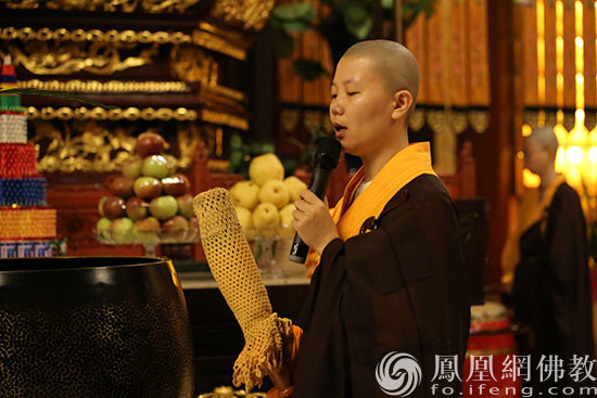 明荙法师发表毕业感言(图片来源:凤凰网佛教 摄影:四川尼众佛学院) 尊敬的各位领导,尊敬的院长师父、法师、亲爱的同学们,大家上午吉祥! 末学是2015级本科班学僧明荙。在此毕业来临之际,首先请允许我代表第十五届全体毕业班学僧,向关心和支持我们成长,并从百忙中,抽空前来参加我们毕业典礼的领导、法师们表示衷心的感谢。向传道解惑谆谆教导我们的师长,以及不辞辛苦护持学院的常住师父们,道一声:师父,您们辛苦了! 忆往昔,法不孤起,仗境方生。感恩宿世善缘的成熟,让曾经一脸懵懂的我们,有幸在此扎根普熏,感恩深厚信仰的凝聚,让我们在淡泊而又充实的学修生活中,绽放自信,不虚此行。回忆四年的点点滴滴: 在寮房安住,我们从毫无头绪,乱堆乱放,到学会生活自理,清清爽爽;在观堂行堂,从被学长师父点名投诉,到端起盆来,干脆利索,轻车熟路;在大寮发心,我们从随众摸索到练就刀工,做得面点,颠得大勺;在殿堂法器,我们从浑然无知,到各大法会敲打唱念样样应手;在课堂学习,我们从似懂非懂到各宗深入,心性之花逐渐绽放。 学修并重是学院的特色,出坡劳作的身影,遍布学院的每个角落。学院各种优秀平台的提供,即锻炼了我们的大局意识和组织协调的能力,又培养了我们敢于担当勇于吃苦的精神。 这四年,我们会因彼此间的默契而开怀大笑;也会因课堂上对所学法义的辨析,而有言辞激烈的交锋;更会因生活中的小摩擦而有委屈的泪水与不满。但是不管遇到什么,经历什么,我们总能坚强应对转为道用。因为这里有正法的摄受,有大家坚定不移的信仰,有善知识潜移默化的熏陶。这四年可以说是历练的四年,是成长的四年,是长养慧命树立僧格的四年。四年中我们不虚此行,勤学戒律,研习教理,努力夯实佛学基础,对学院提供的各大平台,我们深入实践,增长见闻,练就本领,同佛教中国化发展与时俱进。刚入学时懵懂无知的我们早已不见,而今超脱的我们已如学校,旧貌换新颜般不断的打造升华。 因此,感恩教授我们的法师,是你们对三藏教典,扎实善巧的诠释,我们的慧命才得以长养延续。感恩课堂外僧值师父、班主任师父的辛苦,是你们的尽职尽责,铸就了我们威仪庠序,行住坐卧时时不忘收摄身心。感恩教务长慧正法师的辛苦,是您在夜以继日的忙碌,默默操持着教学上上上下下的事情。感恩副院长空师父的慈爱,是您设身处地如母般的心血付出,成就了我们沐浴在如此清净庄严的道场中,欢喜安住、安心办道。更感恩我们的首任院长隆莲老法师对学院的开创,和现任院长如意法师的努力住持,是您们德行的招感,我们才得以踏入佛教高等学府——四川尼众佛学院的大门。才值此殊胜的因缘,成就今非昔比的我们。当然我们更不会忘记国恩之重,正因为国家的不断强大与支持,才有了中国佛教的今天。 我们会加倍珍惜这盛世的机缘,立志以悲智愿行的担当与奉献,来圆满我们的僧格,觉悟人生,奉献人生。 所以学弟们,不要再问学长们,怎么感觉我们什么都会,因为我们有付出,我们有坚持。我们珍惜每一次的发心。面对其中的辛酸与泪水,我们把它交给三宝。我们大家都是在这吃着同一锅饭,饮着同一井水,站在同样的平台上学习,平等享受着常住提供的庄严净土,也希望你们能够好好珍惜四年的时光,愿现在的你们,每一步路不曾空过。不久的你们厚积薄发、青出于蓝,更是好样的!学弟们,加油吧! 虽然我们在佛学院的学修生涯即将画上圆满的句号,但是我们深知,此时的圆满,仅是我们人生阶段性的一个里程碑,我们不会就此得少为足,而是将此作为重要起点,砥砺前行,继续开创人生的新征程。因为佛教的未来需要我们,向全世界全人类,弘扬佛教博大精深的慈悲与智慧,是每个佛弟子义不容辞的责任和使命;因为,伟大复兴的中国梦与我们息息相关,人间佛教与国家,同命运,共发展。我们深知我们肩负的责任有多重。不管我们身处何方,我们都会铭记母校爱国守法,爱教守戒,续佛慧命,报答四恩的教导!更会将母校所学,落到实处,积集发挥作用;因为我们是四川尼众培育的学僧,我们为延续佛灯明而自豪! 三十余载菩提路一句一偈启慧命 与师同行同悲仰愿将此灯燃不熄 最后,再次真诚感恩热心护持佛教教育事业的各级领导,法师,常住师父们三学增上,法体安康,祝愿祖国风调雨顺,国运昌盛,祝愿母校僧才济济,慧灯永存!