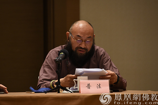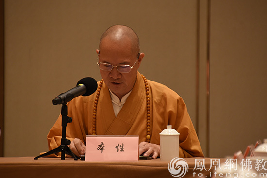 中国佛教协会副会长、福建省佛教协会主持工作常务副会长普法法师通报福建省佛教协会九届二次理事会以来主要工作和近期工作计划(图片来源:凤凰网佛教 摄影:福建省佛教协会)