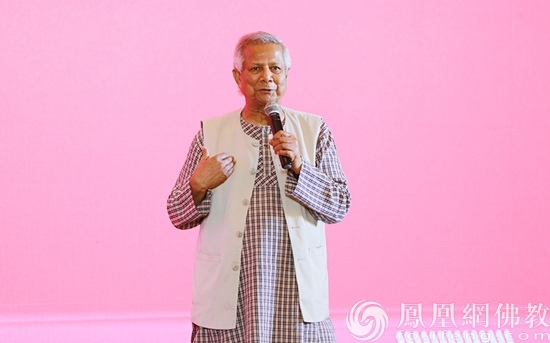 诺贝尔和平奖获得者、格莱珉银行创始人尤努斯演讲(图片来源:凤凰网佛教 摄影:林恩)