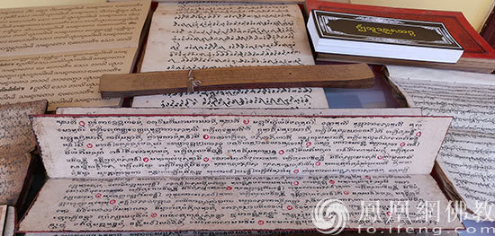 观摩金龙寺经书、傣文书籍(图片来源:凤凰网佛教 摄影:云南沧源金龙寺)