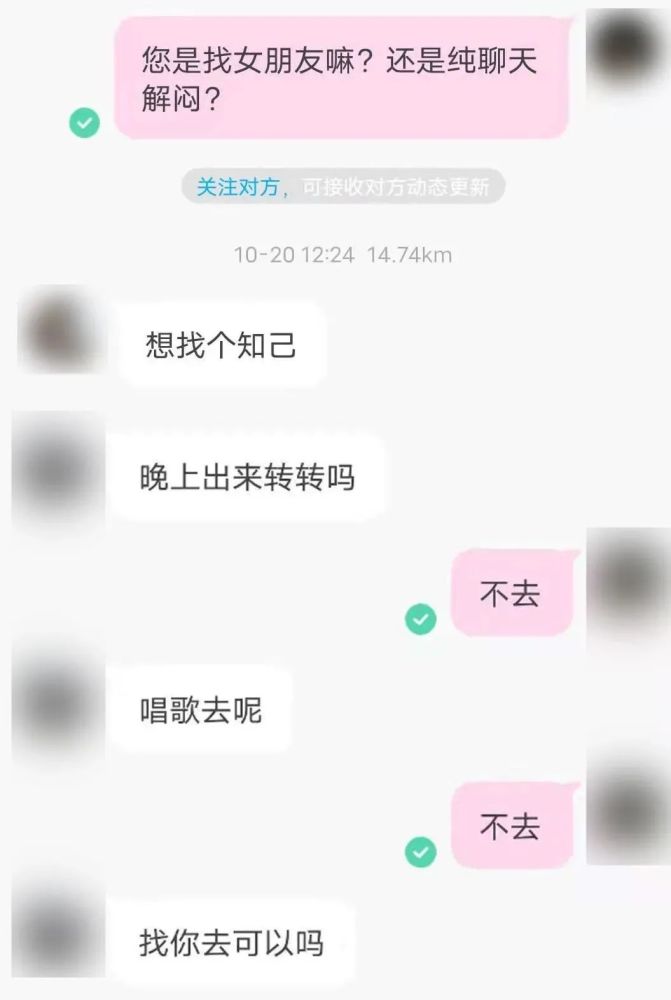 “探探上个人简介写着20多岁,但实际上目测也有50多岁了。主要是在线下见面的时候,因为本人和照片相去甚远,她看到我错愕的表情,也感到些许不好意思,最后阿姨请我吃了一顿饭。”小飞告诉燃财经,当时心态都崩了,感觉地上有个缝,自己一定会钻进去。