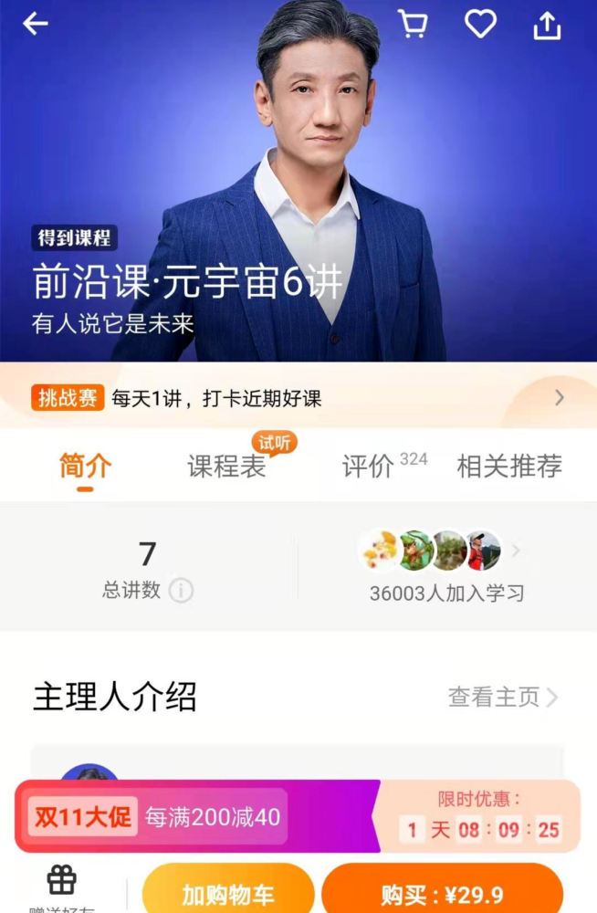 市场需求也催生了一批元宇宙网络培训课程。红星资本局注意到,有的付费课程收入不菲。在罗振宇创立的得到APP上,网课《元宇宙6讲》价格为29.9元,截至11月10日下午的学习人数已达36003人。不考虑折扣,该网课总营收超过100万元。