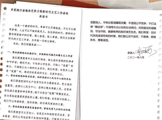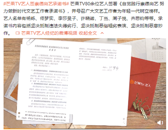 官方发声,看来是需要对演艺人员进行更加严格的监管和整治了。八月十六日,芒果TV的艺人就签署了崇德尚义承诺书,有着八十余位艺人签署了承诺书并且号召广大文艺工作者树立好的榜样。