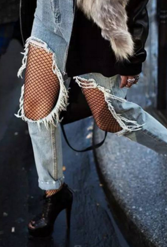 破洞牛仔裤搭配网袜球鞋,有没有很洋气呢?