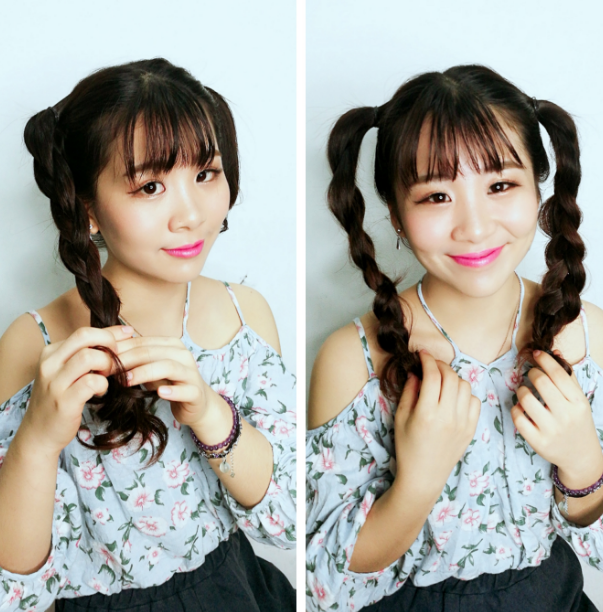 将左右两发区的头发编成三股辫